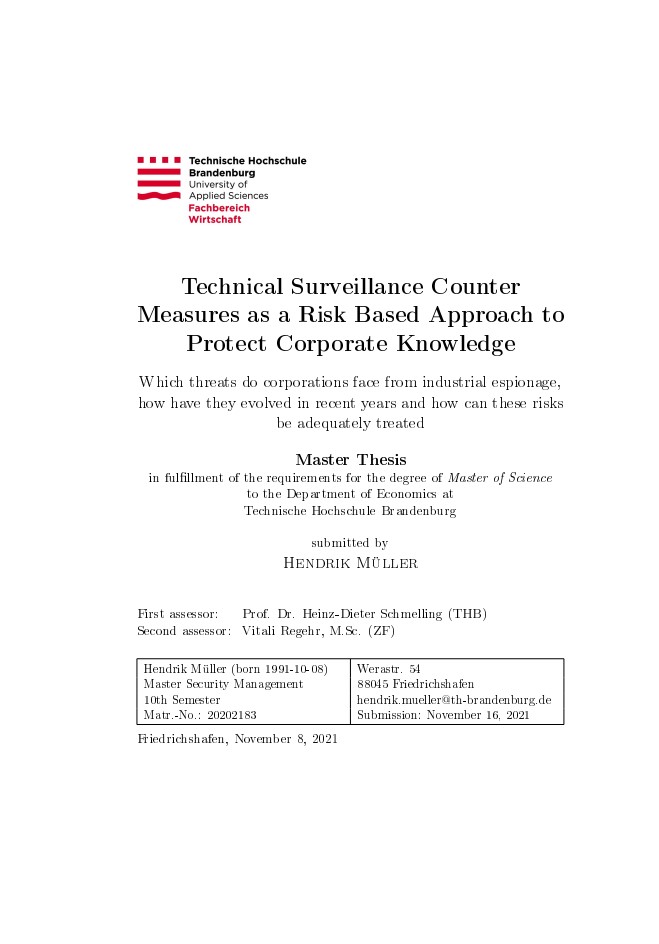 Sicherheitskonzept für das Rechenzentrum des Wirtschafswissenschaftlichen Zentrums an der Technischen Hochschule Brandenburg |